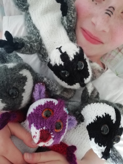Die fertigen Waschbären sind fertig ca 52 cm je nacch gewähltem Garn auch größer oder kleiner.