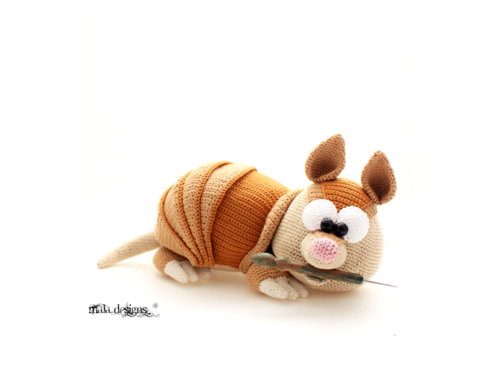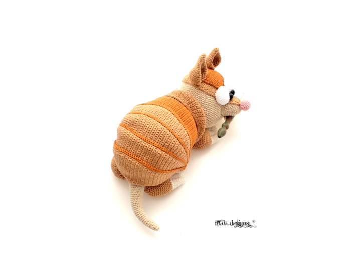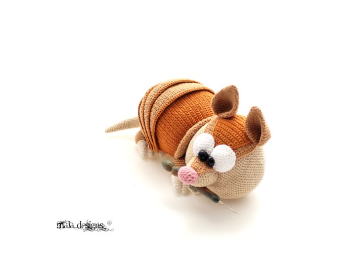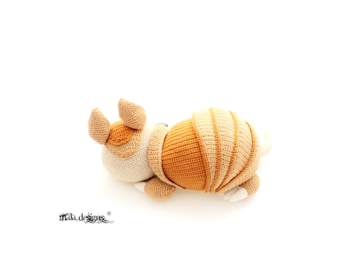 Diese Häkelanleitung beinhaltet die Beschreibung für das abgebildete Gürteltier. Nach Fertigstellung wird das Gürteltier ca.30cm x 20cm (LxB) groß.