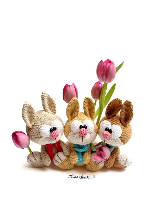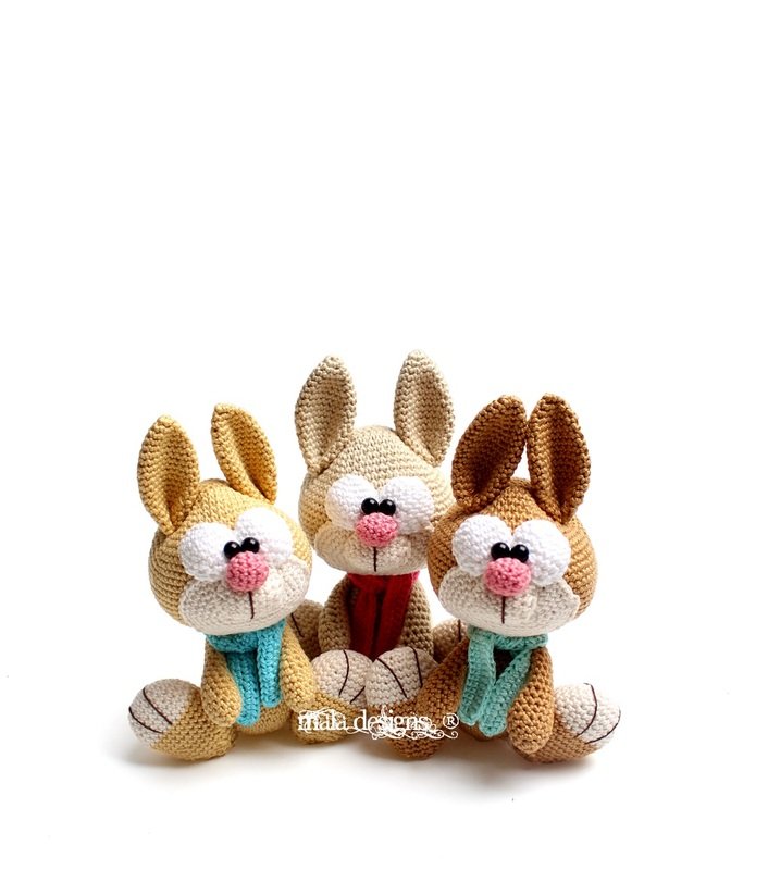 Diese Häkelanleitung beinhaltet die Beschreibung für drei uterschiedliche Hasen. Nach Fertigstellung werden die Hasen ca.16 cm groß.