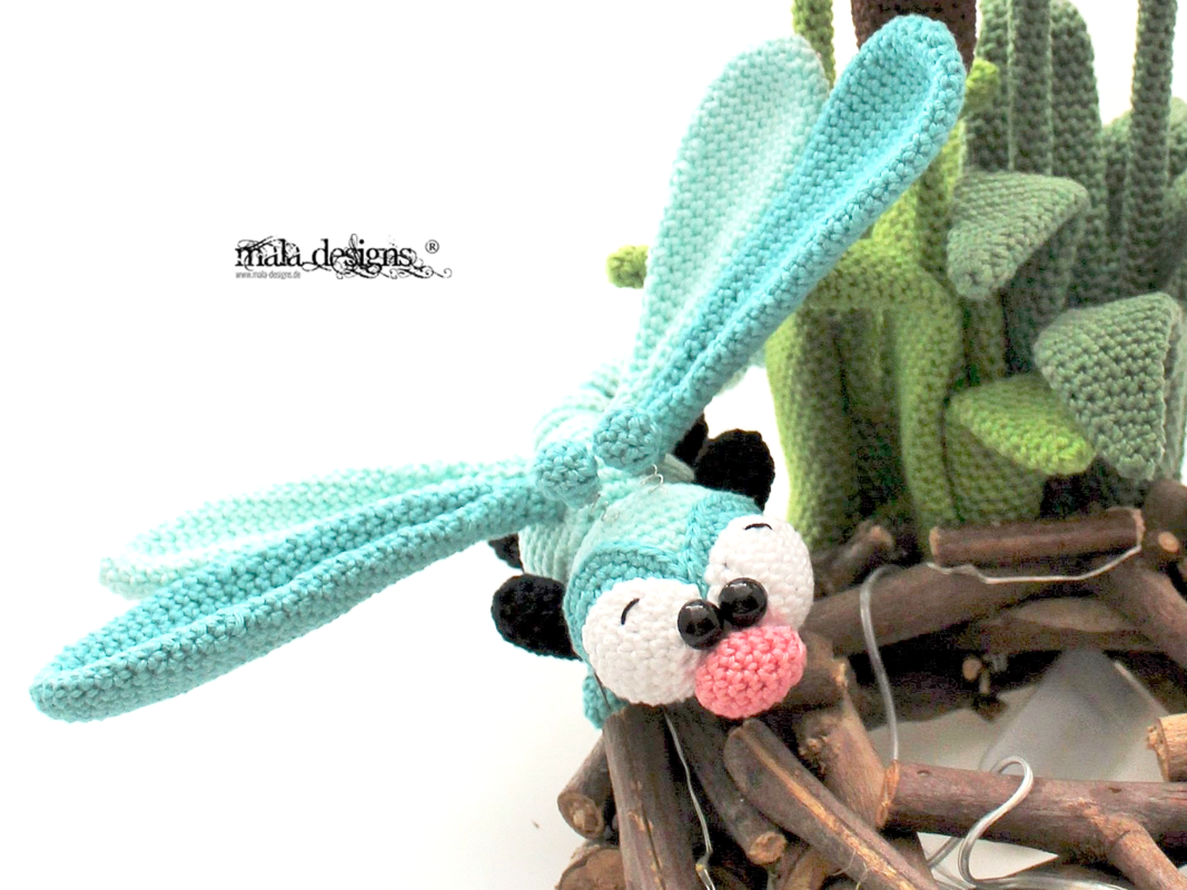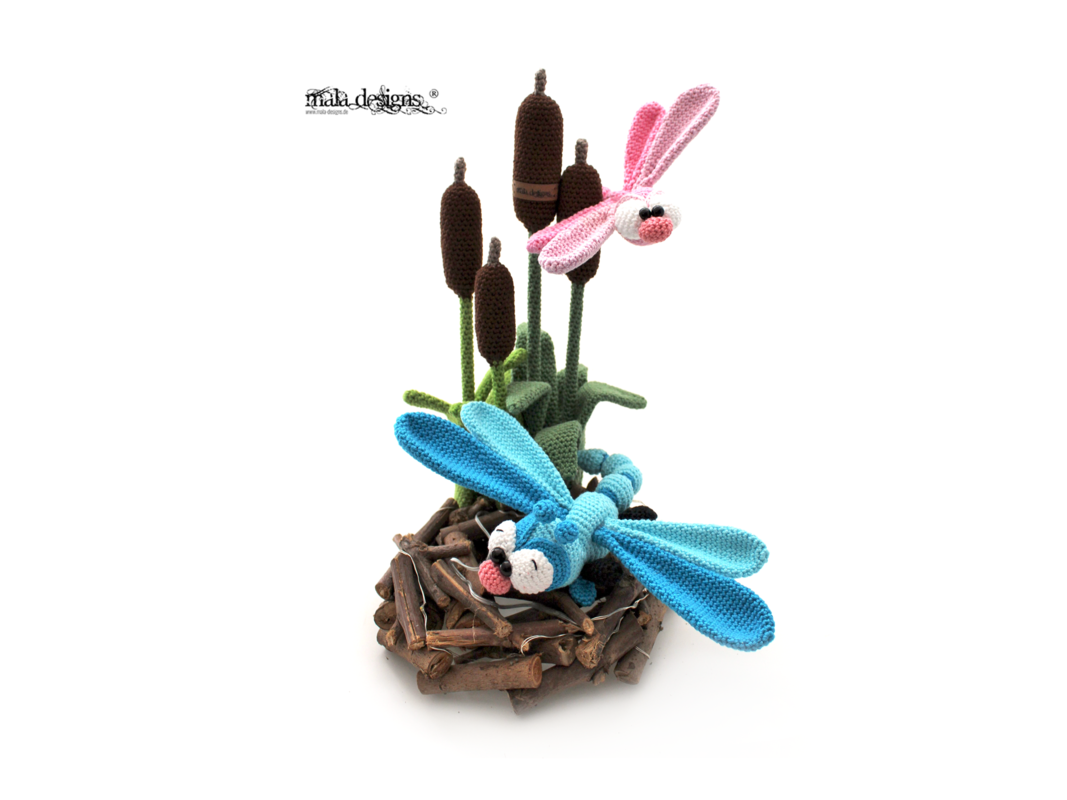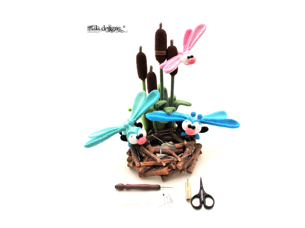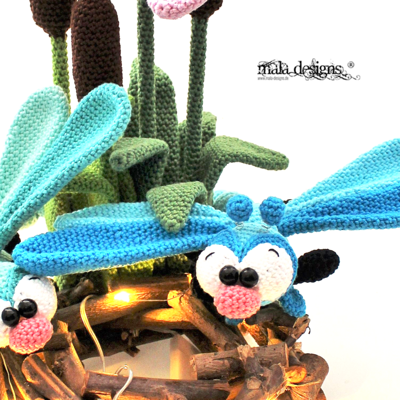 Diese Häkelanleitung beinhaltet die Beschreibung für zwei unterschiedlich große Libellen, Rohrkolben und Gräser. Nach Fertigstellung werden die großen Libellen ca. 22cm x 22 cm (LxB) und die kleine Libelle 16cm x 16 cm groß. Die Rohrkolben haben eine Länge von 18cm - 30cm.