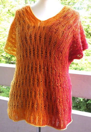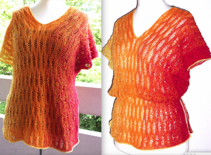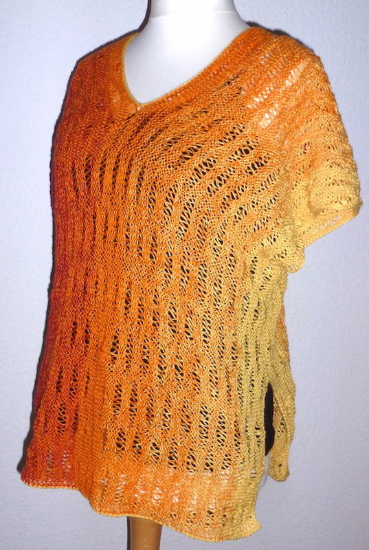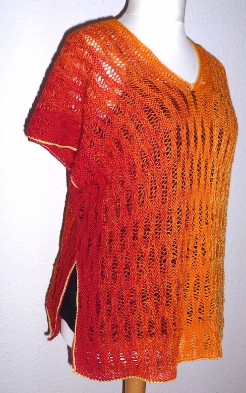 Der Sonnenfänger-Pulli wird aus einem Bobbel am Stück quer gestrickt.