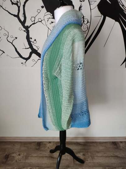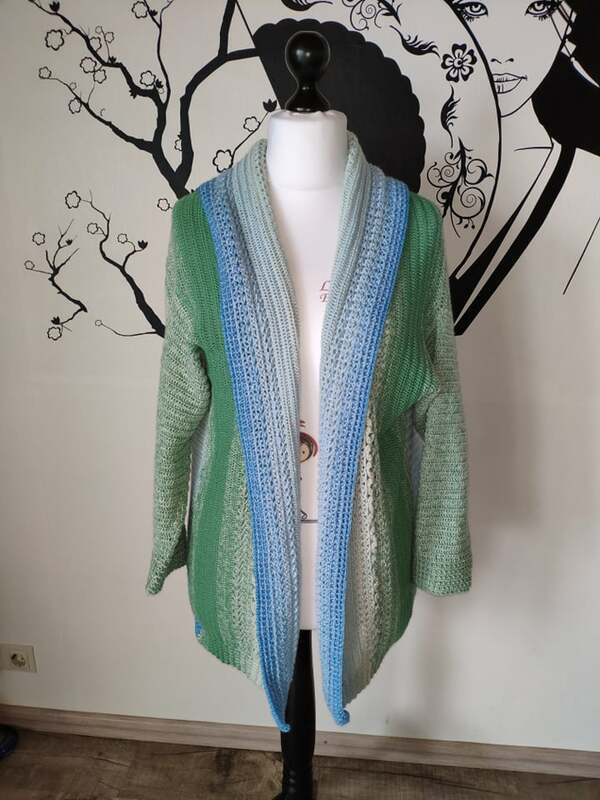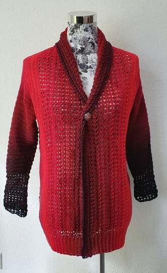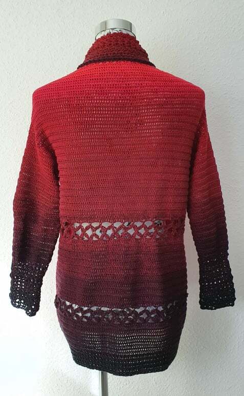 Die Häkeljacke wird an einem Stück gearbeitet.