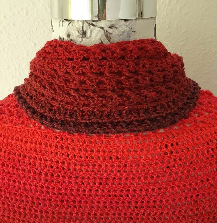 • Passende Häkelnadel, ich empfehle eine halbe Stärke kleiner damit das Maschenbild kompakter wird (Maschenprobe: 23Mx13R=10cmx10cm)