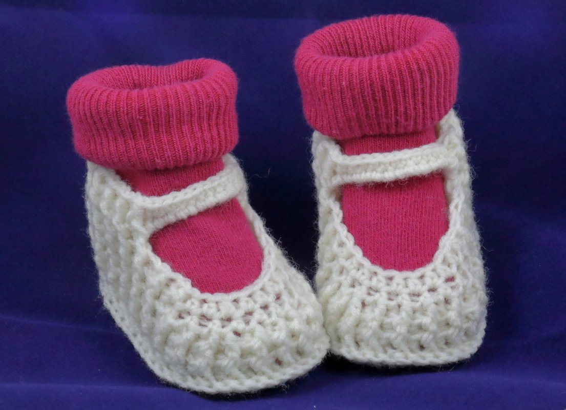Diese süßen Babyschüchen mit Ballerina-Schnalle sind mit Refief-Maschen gearbeitet und eignen sich für jede Farbe. Toll zu kombinieren mit farbigen Söcken oder einfach über den Strampler ziehen und schon kommen süße Träume von den ersten Balettschritten.