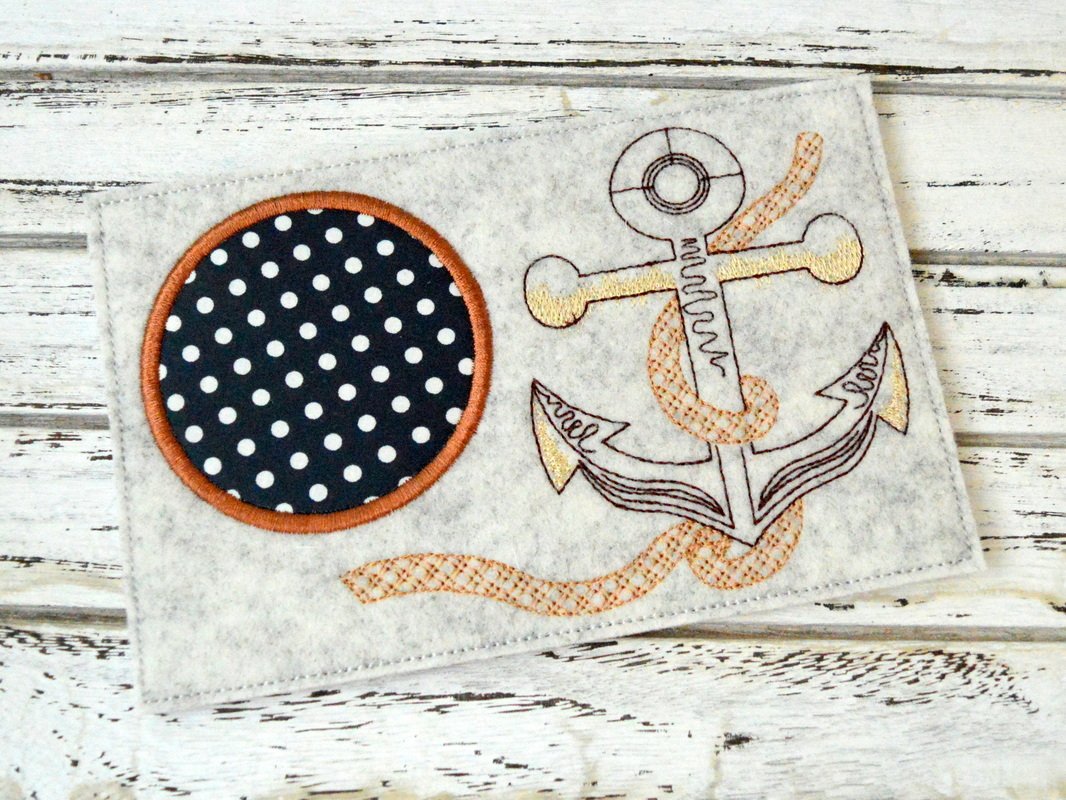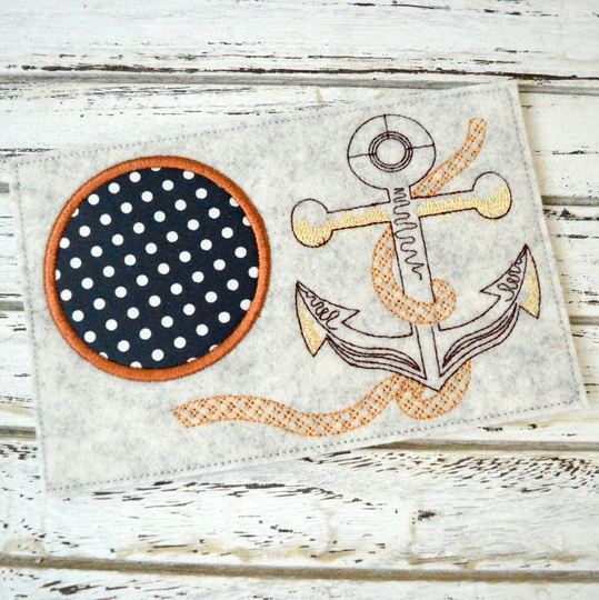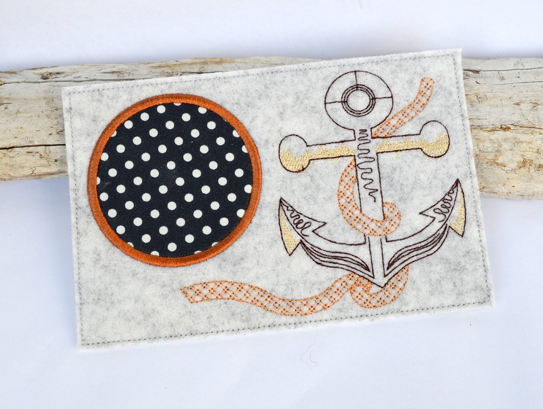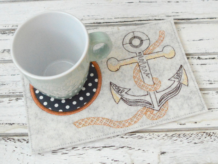 Stickdatei Mug Rug mit Anker und Seil.