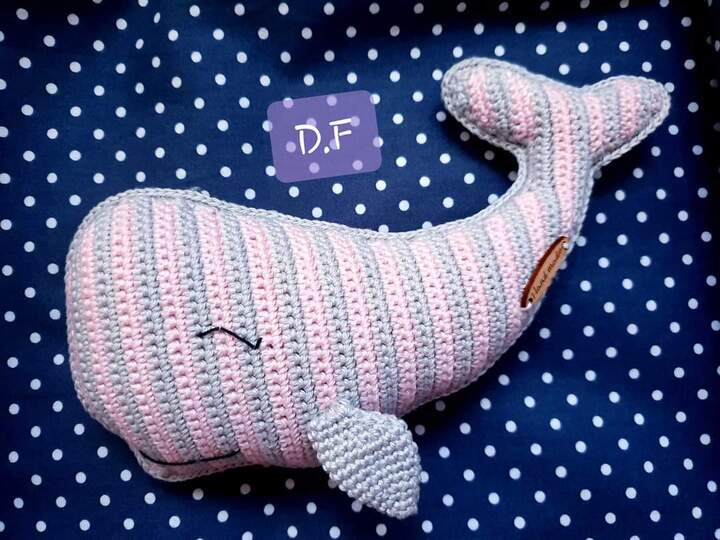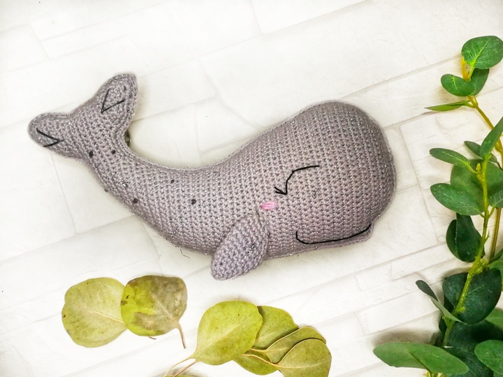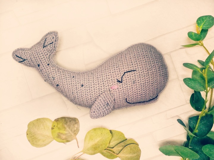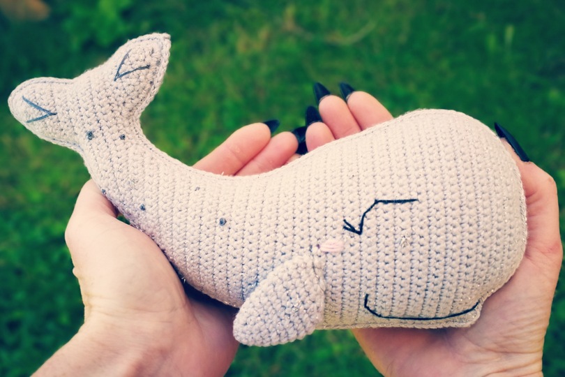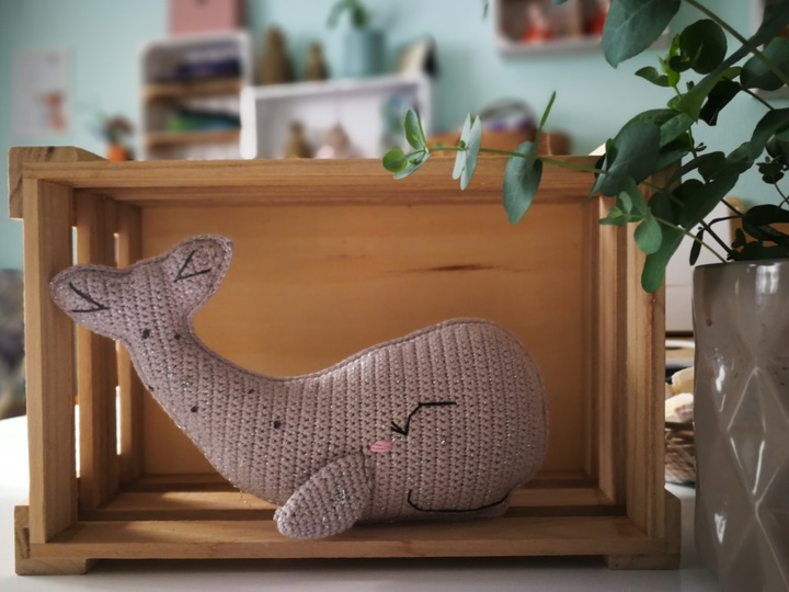 Diesen süßen, verschmitzten Wal kannst du mit Hilfe dieser Anleitung nacharbeiten.