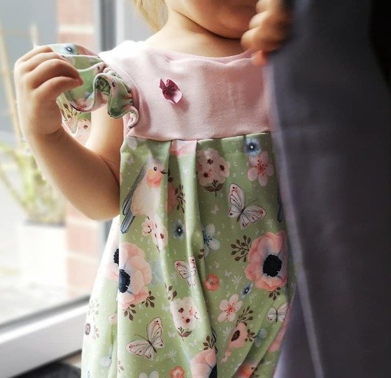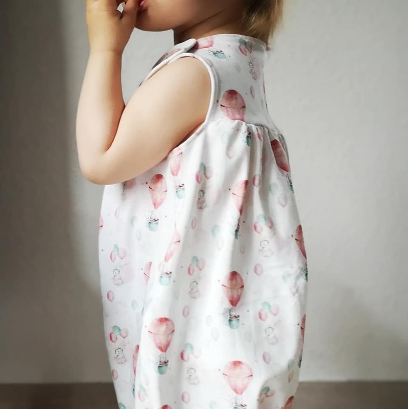 Der Mini&Me Sommerromper ist ein Oversized-Romper, der besonders in der heißen Jahreszeit schön locker und luftig sitzt. Er bietet die Größen 50-122. Er kann wunderbar aus Musselin oder Baumwolle genäht werden. Aber auch dehnbare Stoffe, wie Jersey oder French Terry eignen sich hervorragend. Durch seine verschiedenen Varianten und diverse Knopfleisten, bietet er jede Menge Raum, immer wieder ein kreatives Einzelstück zu nähen.