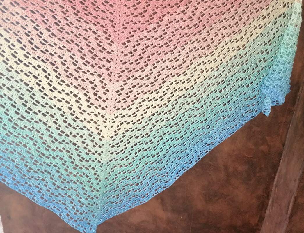 Die Anleitung zum Tuch besteht aus schriftlich ausformulierten Reihen und beinhaltet eine Häkelschrift.