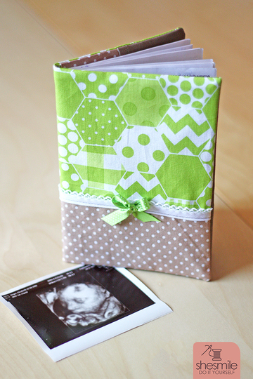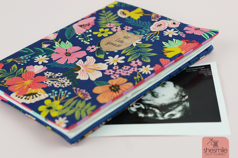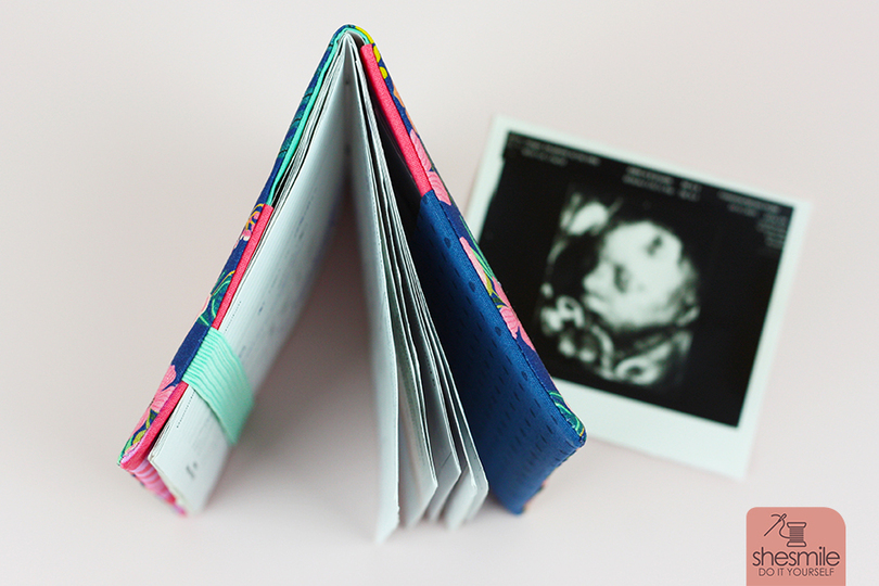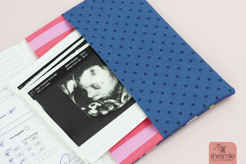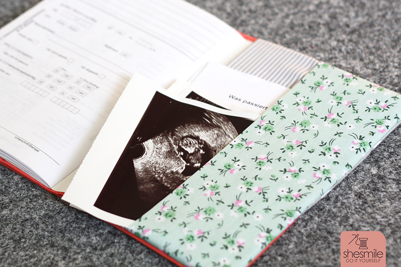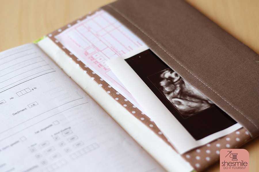 Ein kleines Fach im Hinteren Teil des Umschlags bietet genügend Platz für Ultraschallbilder oder Infomaterial vom Arzt. Optional kannst du vorne ein Gummiband oder Stoffband einnähen um beim zweiten Kind dann die erste Schwangerschaft abzuheften.