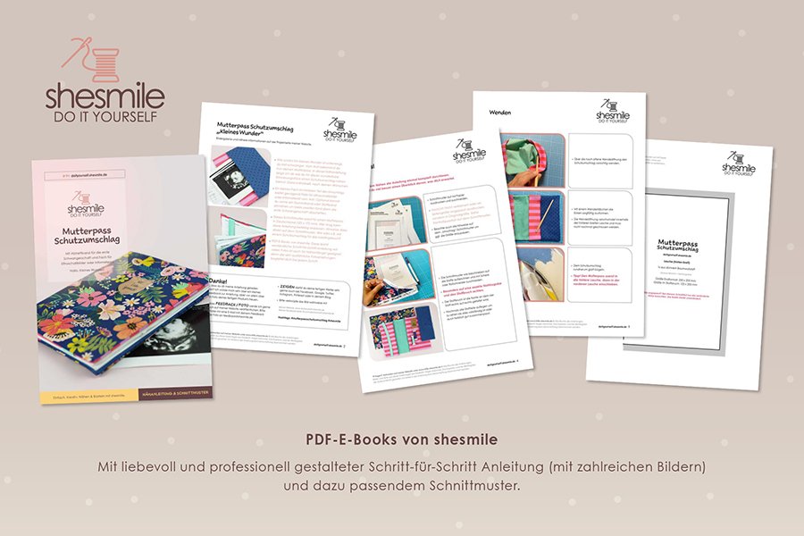 PDF-E-Books von shesmile: Diese leicht verständliche Schritt-für-Schritt-Anleitung mit vielen Fotos ist auch für Nähanfänger geeignet, denn die sehr ausführliche Fotoanleitungen begleitet dich bei jedem Schritt.