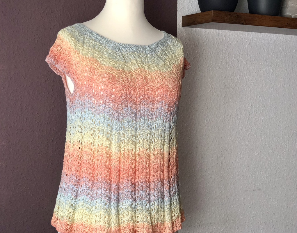 Die luftige Tunika wird in Runden von oben nach unten gestrickt.