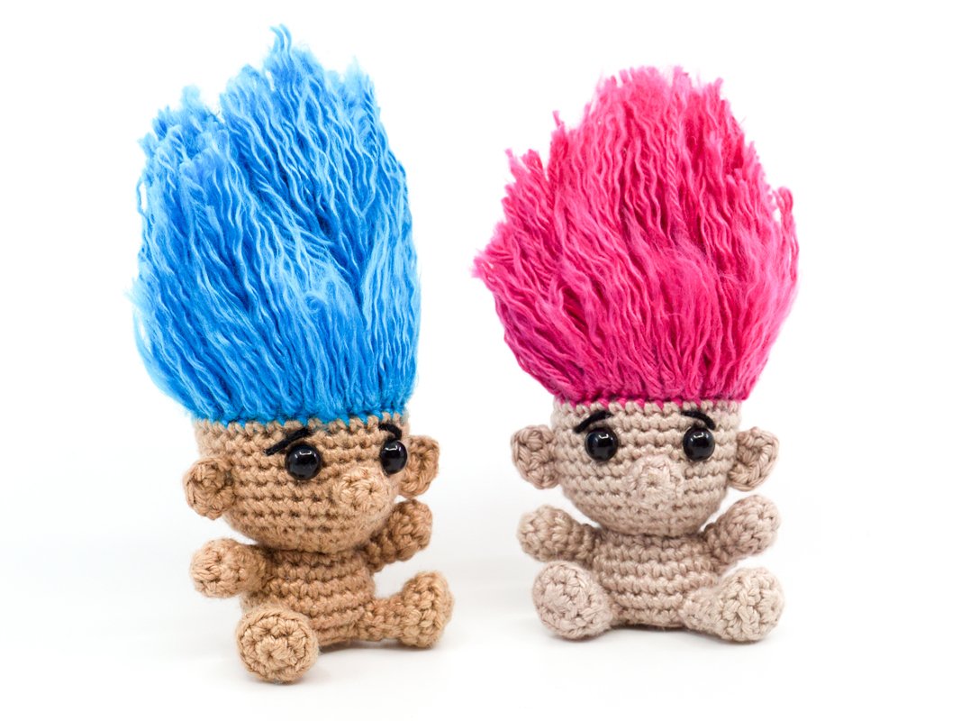 Diese kleinen Trolle lassen sich schnell häkeln und eignen sich perfekt als Deko Figürchen, Geschenk oder Schlüsselanhänger.