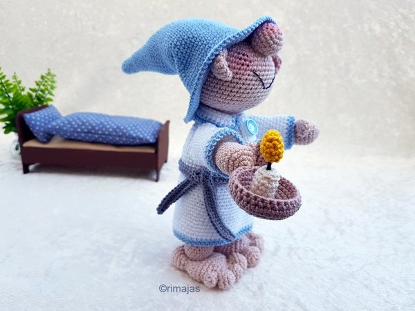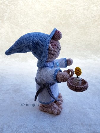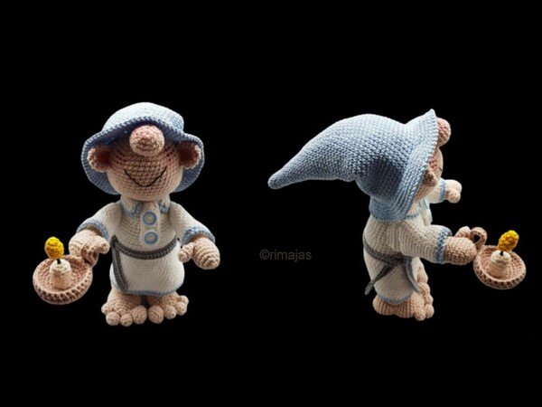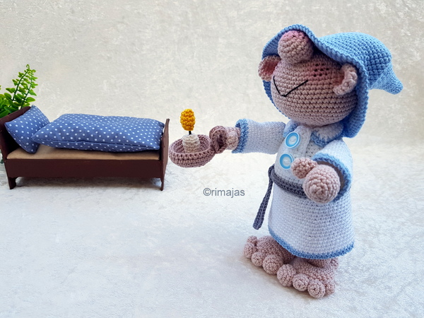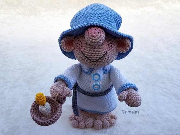 In dieser Häkelanleitung beschreibe ich Dir, wie Du den Schlafwandler Martin mit seinem Kerzenteller häkelst.
