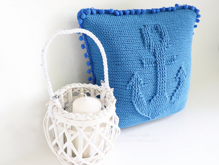 Diese Häkelanleitung besteht aus bebilderter Anleitung zum Häkeln des Kissens (Kissenbezuges) mit dem Reliefmuster "Anker". Dieses Kissen ist sehr schnell und leicht zu häkeln, so dass es auch als Geschenk für Freunde und Verwande geeinget ist. Der Anker wird mit vorderen Reliefstäbchen gehäkelt und das restliche Teil mit Kettmachen. Natürlich können Sie dieses Kissen (Kissenbezug) in Ihrer Lieblingsfarben häkeln.