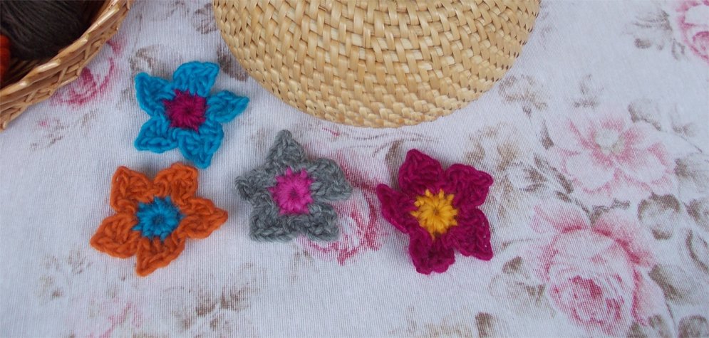 Häkelblumen können an Beanies, Mützen, auf Decken, Babydecken, Kissenbezügen, Taschen, Jacken, Kleider, Schals und vielen Sachen mehr aufgebracht (mit Nadeln angesteckt oder aufgenäht) werden.