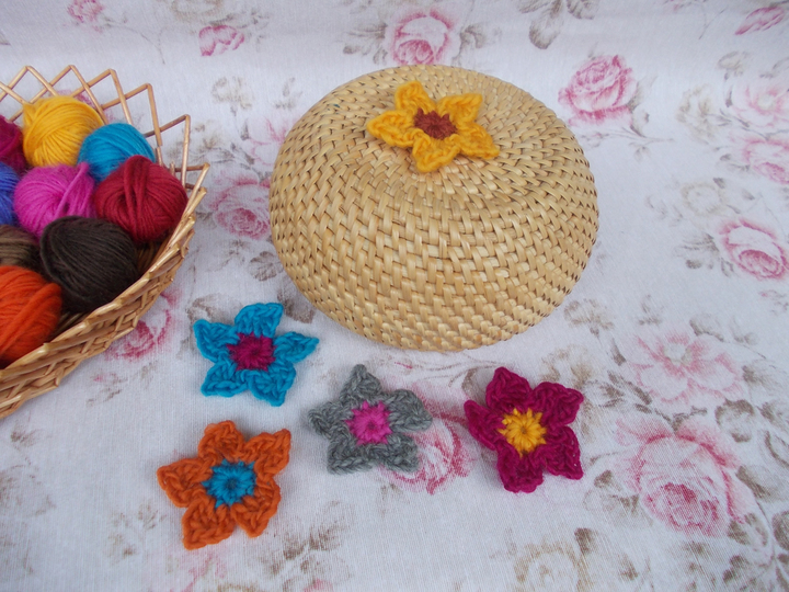 Aus allen Wollresten immer ein paar Blumen häkeln. Damit macht man sich und anderen auch ein schönes Geschenk.