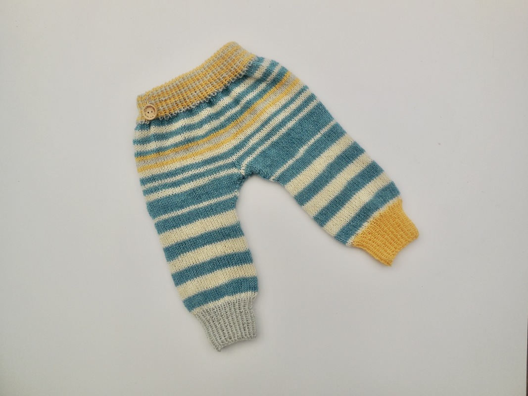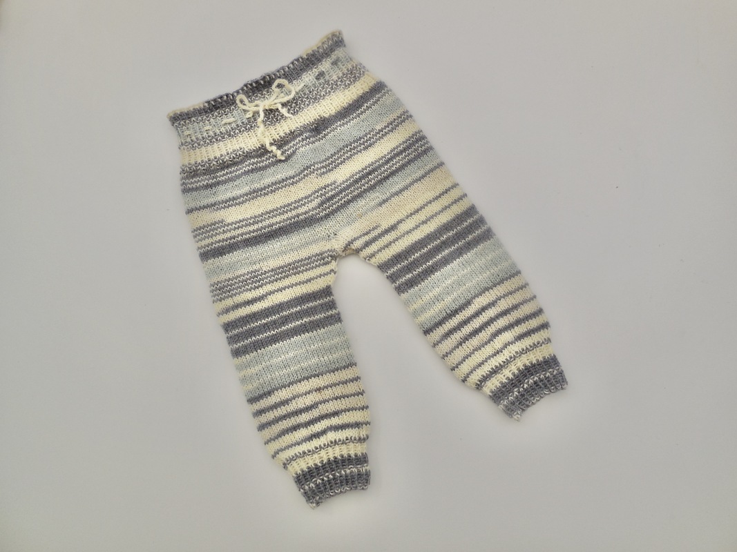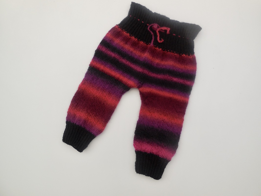 Aus 4fach Sockenwolle sind diese niedlichen Babyhosen gestrickt. Für ein Höschen benötigt man lediglich
