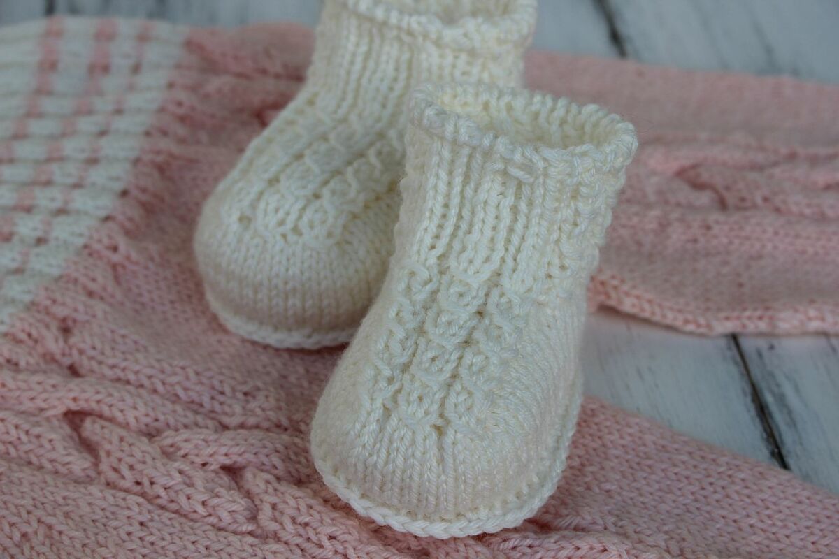 Diese Babyschühchen sind wollig weich! Gestrickt am Stück, von daher sind die Schuhe ohne Naht.