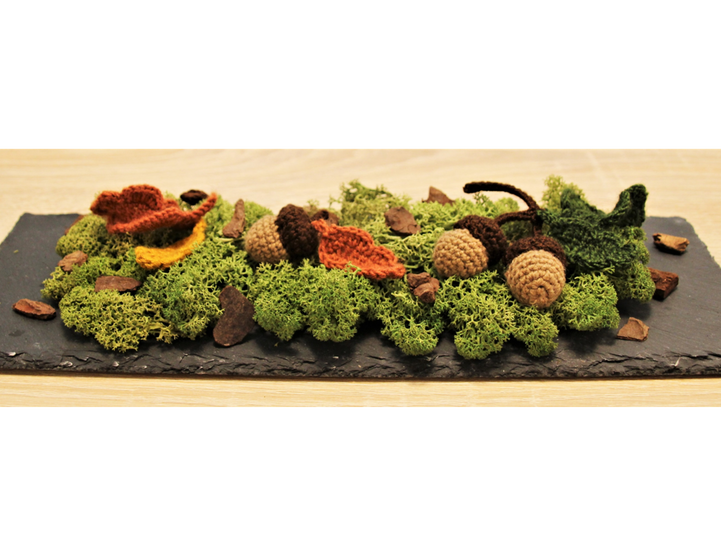 Hier bekommst du die Anleitung für eine kinderleichte und ruck zuck gefertigte Herbstdeko. Enthalten sind die Anleitungen für ein großes und ein kleines Blatt, sowie die Eichel und das Hütchen.