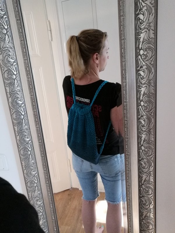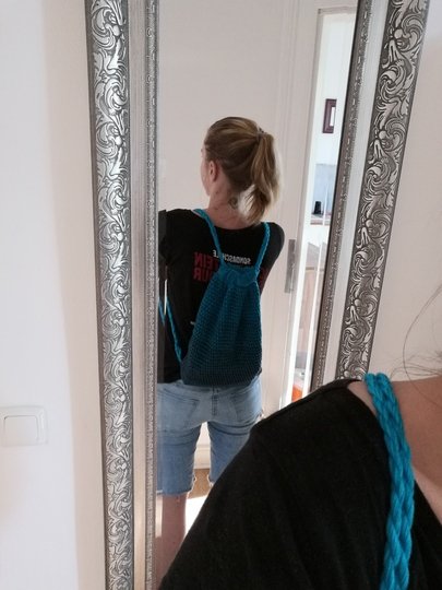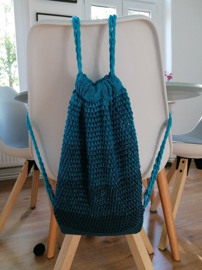 Je nachdem wie locker oder fest du häkelst hat der Rucksack eine Größe von 36x28cm