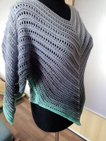 Die Tunika Wilma ist ein hübsches Teil mit fledermausartigen Ärmeln und wird in einem Stück gehäkelt.