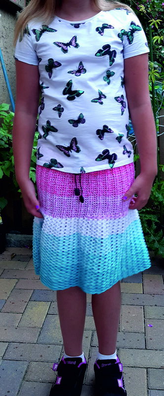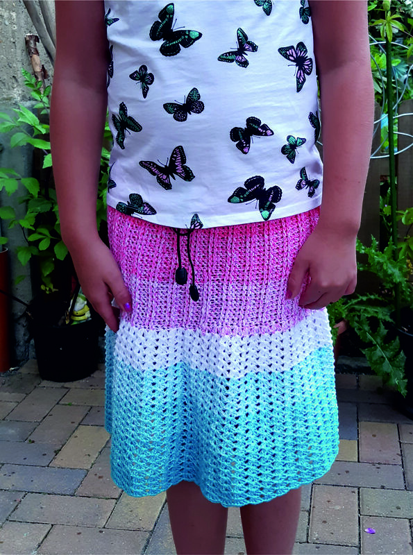 kann in jeder beliebigen Größe und Länge gehäkelt werden, ob als kurzer Sommerrock an heißen Tagen oder zu Leggings, er ist immer ein echter Hingucker.