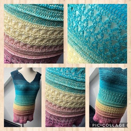 Du erhälst hier eine 10 seitige, schriftliche Häkelanleitung, mit bebilderter Hilfestellung, einer Häkelschrift für den Rockteil, ein paar fertige Beispiele zur individuellen Ideenentwicklung, einer kleinen Verbrauchstabelle zur Orientierung, sowie ein Begleitvideo zur Hilfestellung des zweiten Musters.