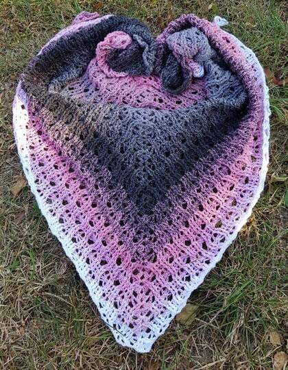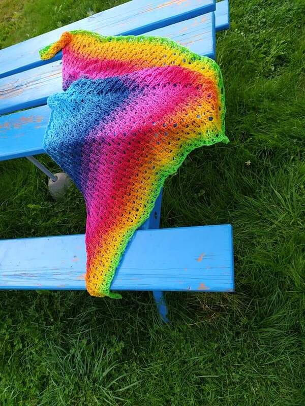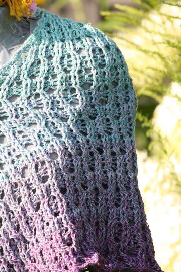 Ihr könnt dieses Tuch mit einem Bobbel 3 oder 4 fädig ab 750m häkeln.