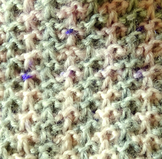 Schwierigkeit: abenteuerlustige Anfänger (in Runden auf einem Nadelspiel arbeiten, zweifarbiges Hebemaschenmuster)