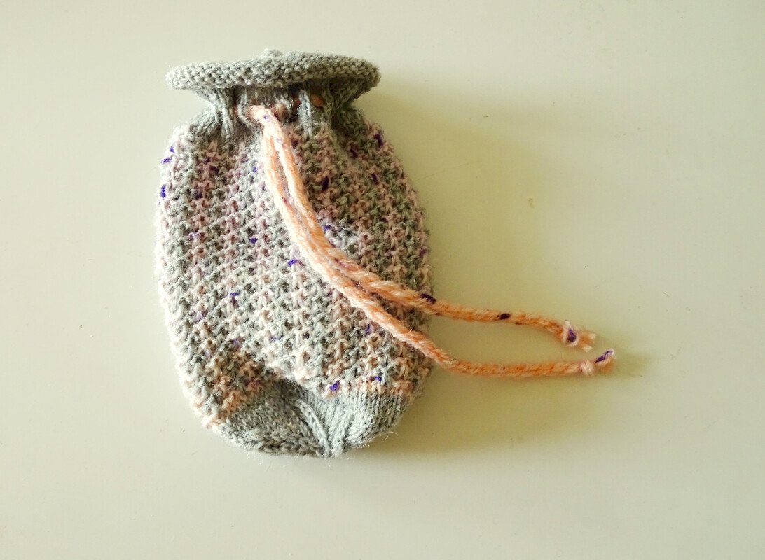 Die Tasche ist einfach zu stricken und sieht gut aus. Du brauchst dafür Reste von Sockenwolle in 2 verschiedenen Farben nach Geschmack.