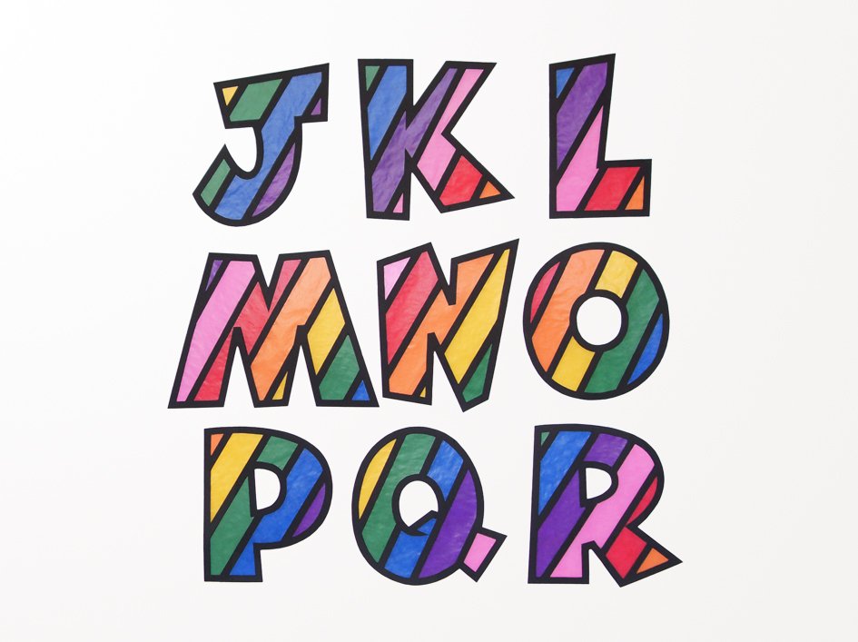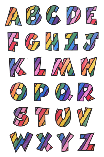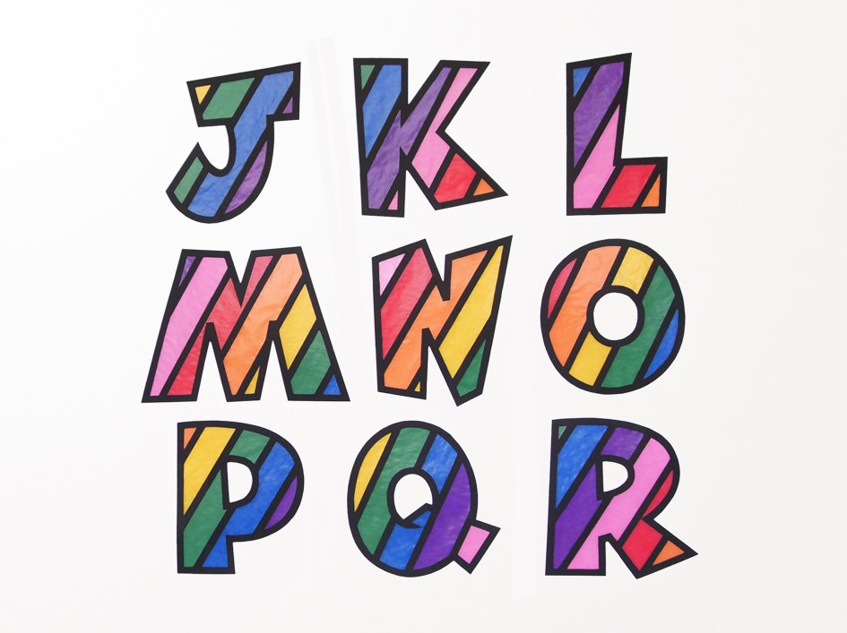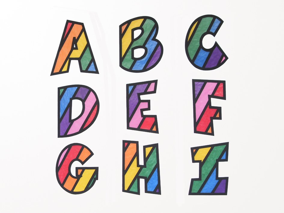 Dieses bunte Alphabet ist aus Fotokarton und Transparentpapier gefertigt.