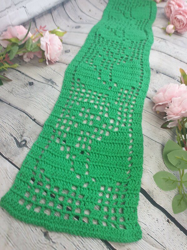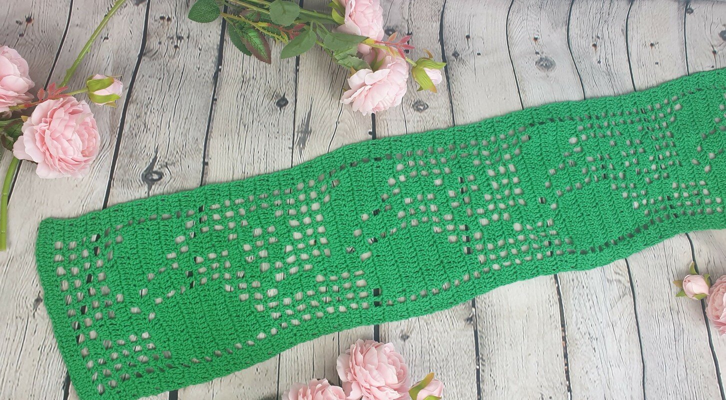 Dies ist eine Anleitung für einen Herbstlichen Tischläufer / ein Tischband im Filet Stile gearbeitet.