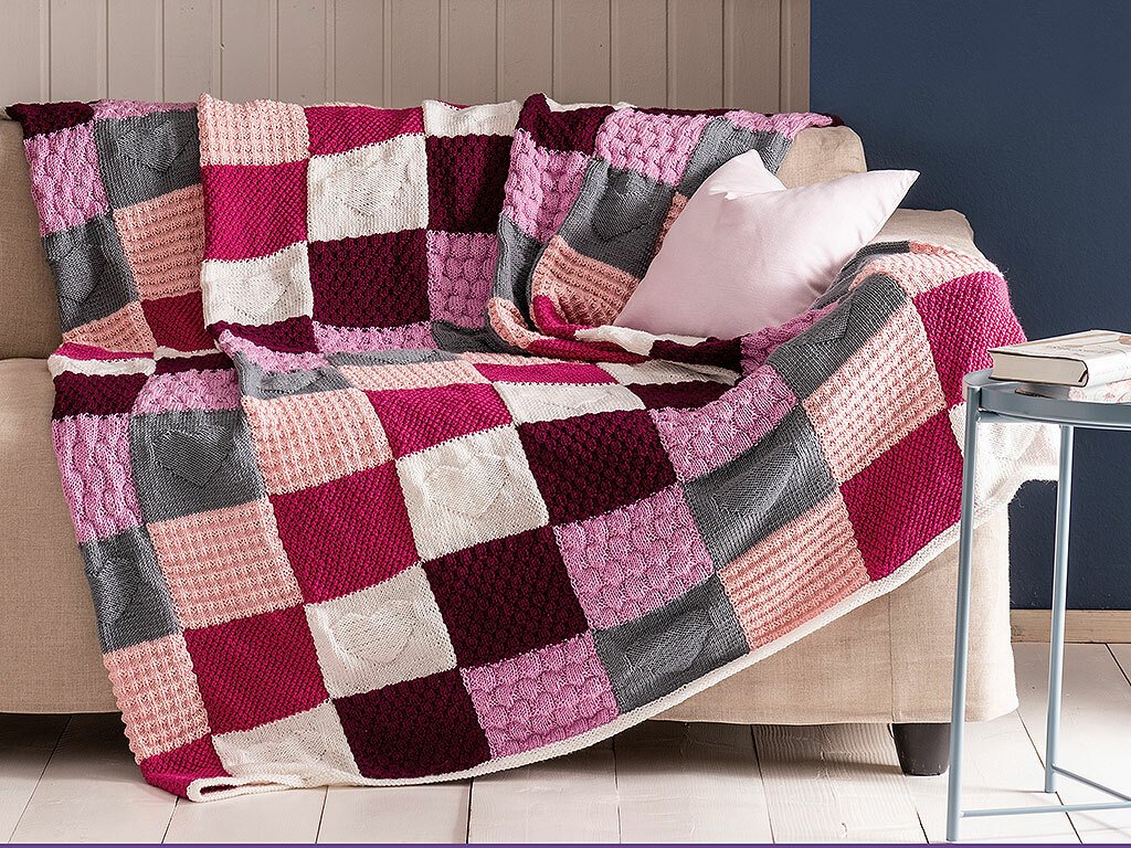 Eine Kuscheldecke in tollen Beerentönen mit der Woolly Hugs Charity.