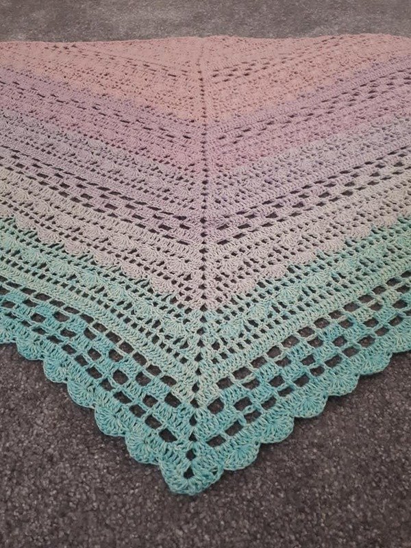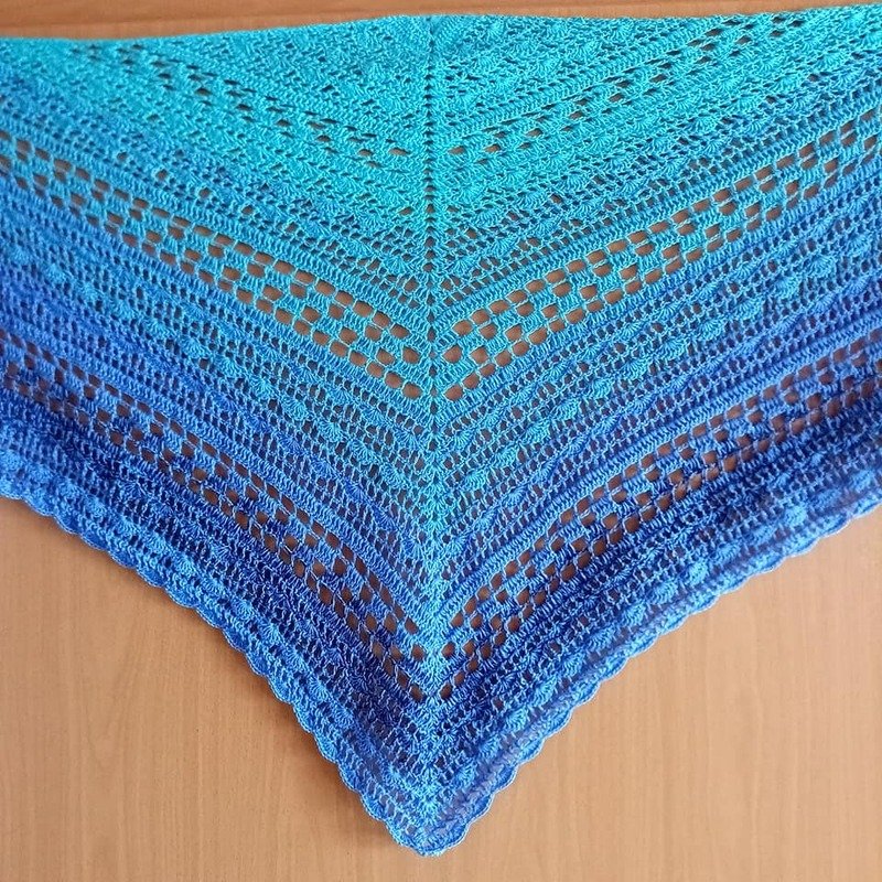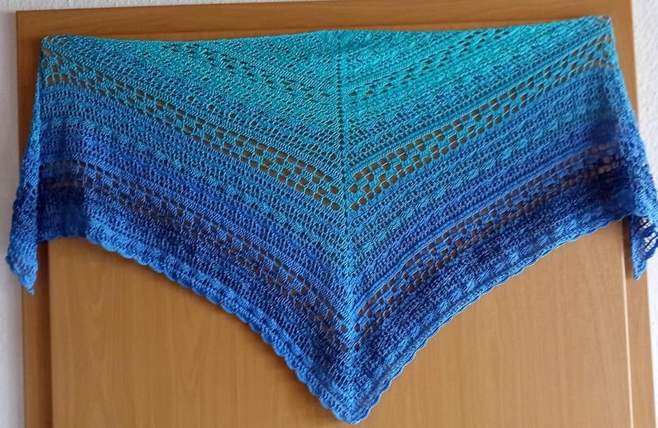 Die Größe des Tuches variert je nach Material und wie fest/locker man häkelt.