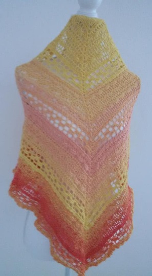 Hier bekommst du eine Anleitung in Häkelschrift für ein schönes, sommerliches Tuch das nach kurzem einarbeiten auch " fernsehtauglich" ist.