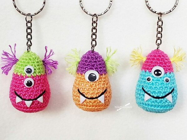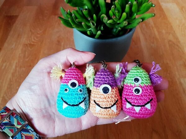 Am Schlüssel, einer Tasche oder am Schulranzen, die Monster fallen auf und bereiten gute Laune. So ein freches, buntes Monsterchen ist doch ein cooler Glücksbringer.