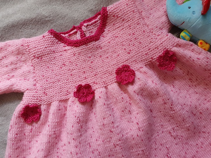 Das Babykleidchen wird nur in rechten und linken Maschen gestrickt.