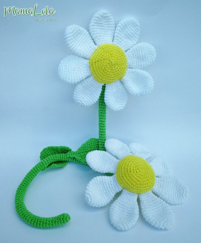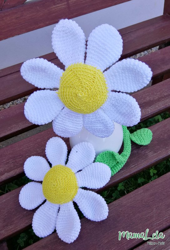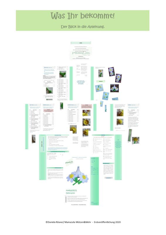 Mit den angegebenen Materialien wird die Margerite ca. 10x20 cm groß