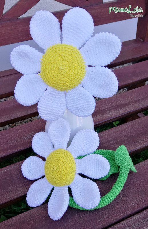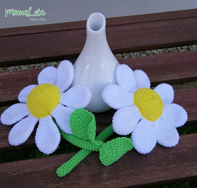 Mit dieser Häkelanleitung könnt ihr euch die im Artikelbild gezeigte Margerite zaubern.