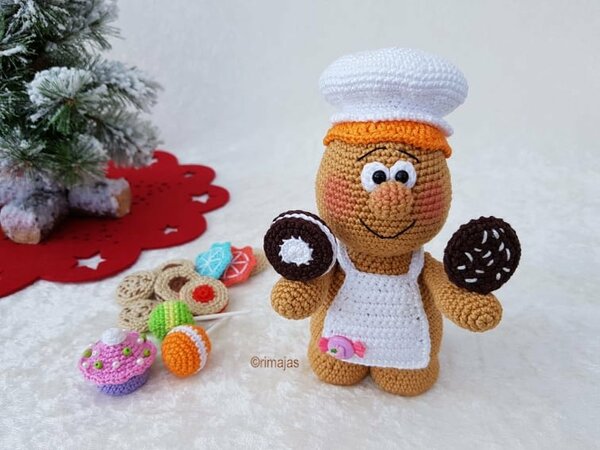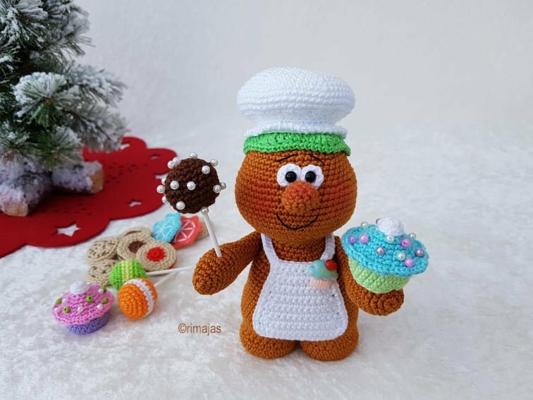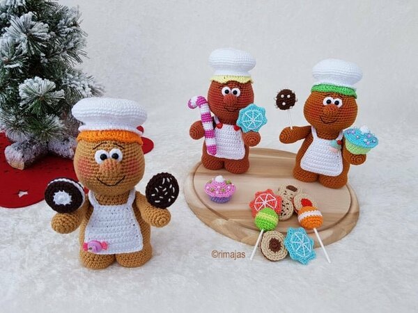 In dieser Häkelanleitung wird beschrieben wie du die Lebkuchenmädchen, die gefüllten Kekse, die Cookies, die Sternenkekse, die Zuckerstangen, die Cup Cakes, die Cake Pops und Lollys häkelst.