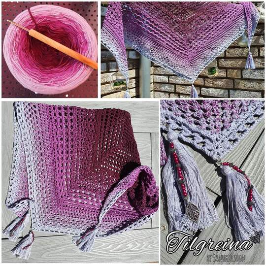 Diese kostenlose Häkelanleitung für das Dreiecktuch Tilgreina bietet Dir eine Gelegenheit, Dir ein schönes Tuch mit abwechslungsreichen und interessanten Mustern herzustellen. Die Muster sind teilweise etwas anspruchsvoller, aber mit etwas Mut kann ein geübter Anfänger damit klar kommen, insbesondere weil ich die nicht so geläufigen Maschen genau erklärt habe. Und für Fortgeschrittene wird es nicht langweilig.