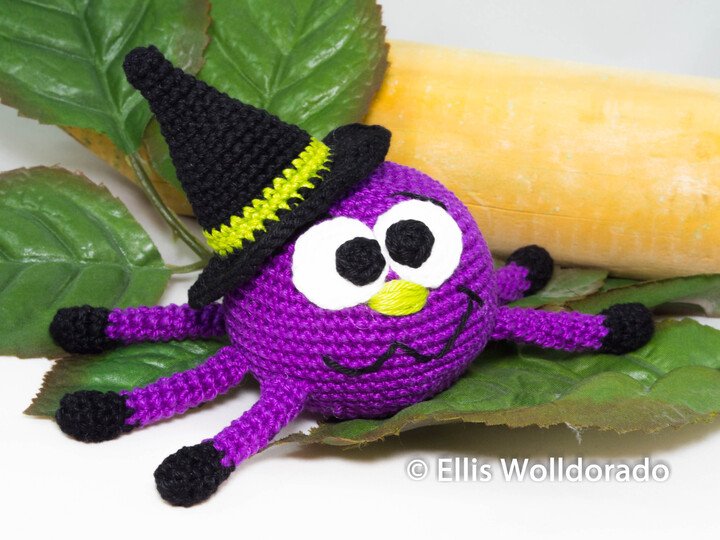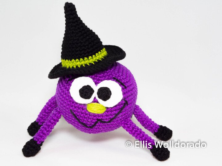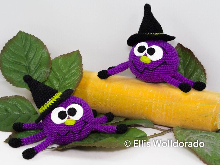 Mit einem Baumwollgarn (Lauflänge 125 m / 50 g) wie z. B. Catania von Schachenmayr, Cotton Quick von Gründl, Miami von RedHeart, Cotone von Lana Grossa oder Carina Baumwolle von G-B und einer Häkelnadel Nr. 2,5 wird eine Spinne (vom Beim bis zum Hut) ca. 13 cm groß. Dabei kommt es jedoch immer darauf an, wie fest oder locker man häkelt und wie kräftig die Figur später mit Füllwatte ausgestopft wird. Bei der Verwendung eines anderen Garns und/oder einer anderen Nadelstärke kann die Größe der Figur variieren.