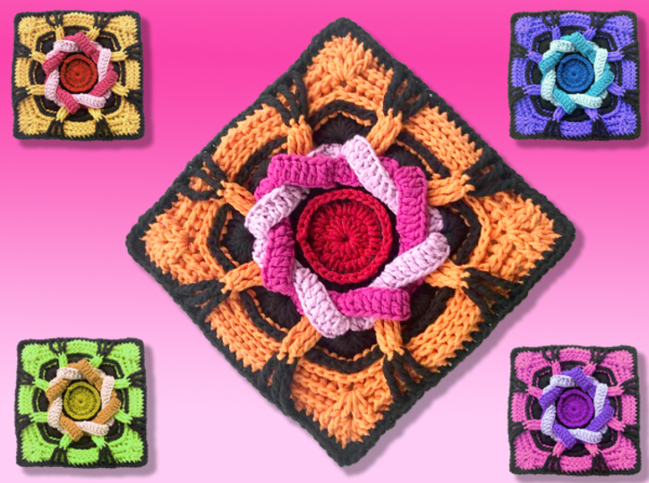 Granny "Blumenglück" hat einen raffinierten Mittelpunkt mit den spannend, gedrehten Runden...dann folgen viele Reliefstäbchen.