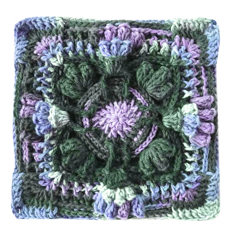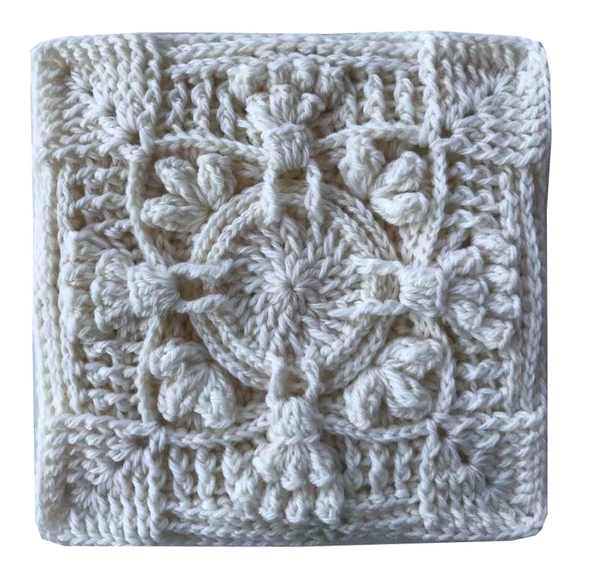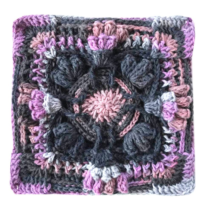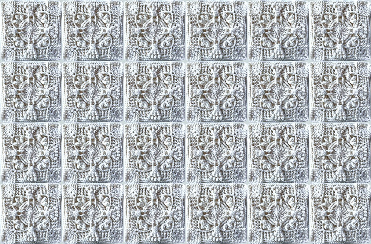 ein fertiges Granny Muster "Cornucopia" wiegt 60 gr und ist 22 cm breit und hoch...somit kannst Du es auch mit vielen meiner Reliefgrannymuster kombinieren, die auch 22 cm breit sind.