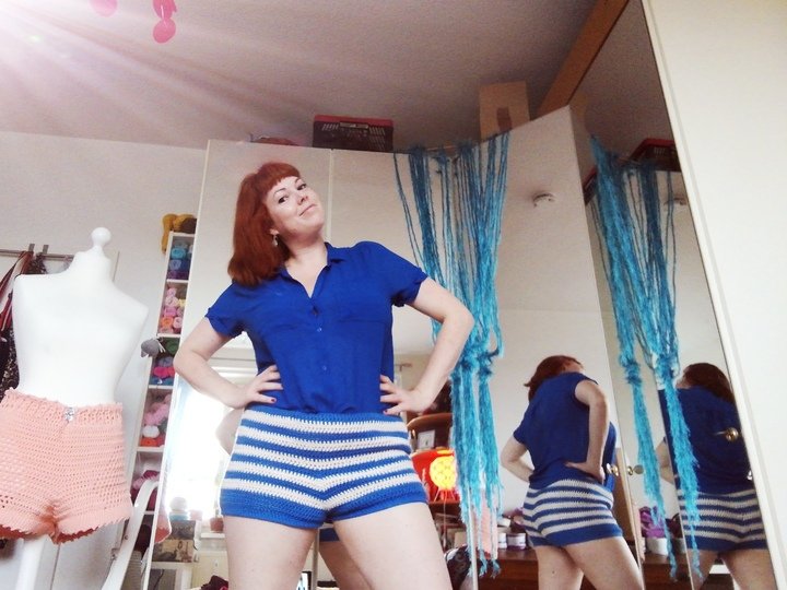 Hier meine Häkelanleitung für 8/8 Baumwollgarn (dickes Garn). Die Shorts ist schnell und einfach gemacht. Du kannst direkt nach Deinen Maßen nacharbeiten.