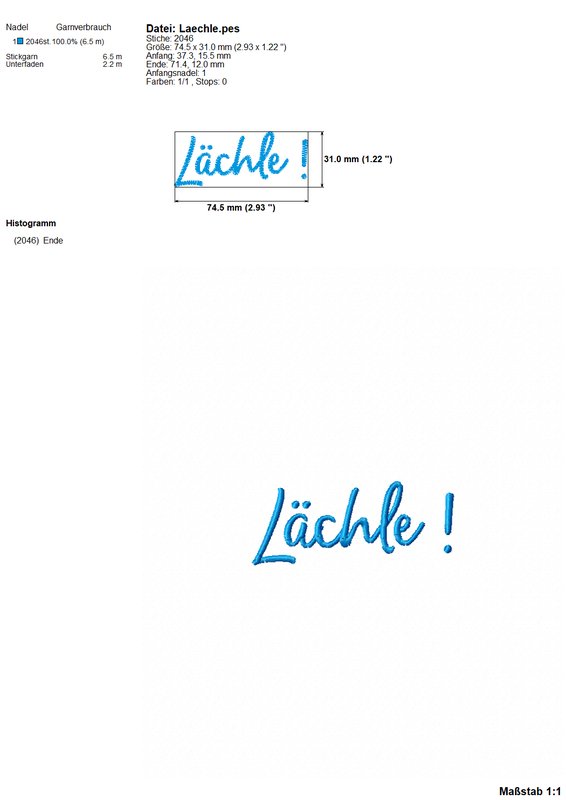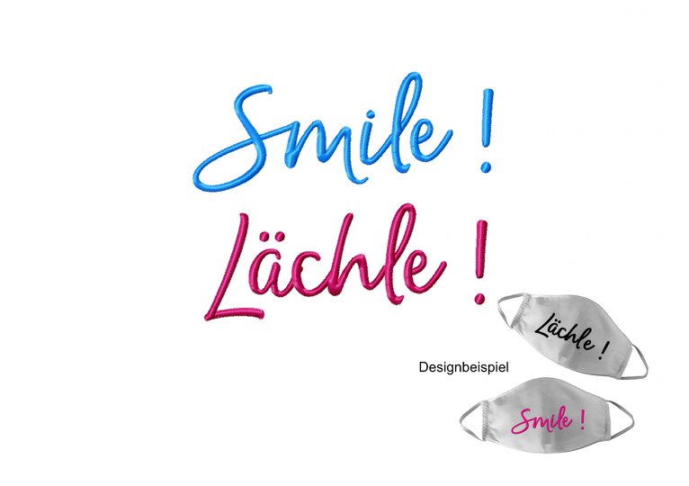Stickdatei Schriftzug "Smile!" und "Lächle!" für den Rahmen 10 cm x 10 cm