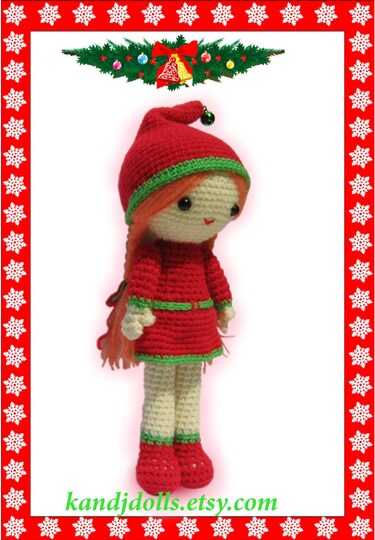 Häkelanleitung für eine kleine Weihnachtspuppe.