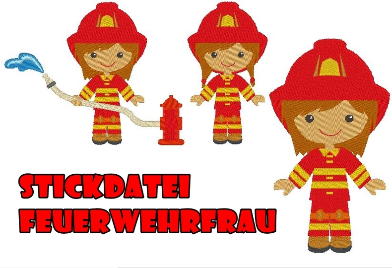 ♥ Stickdatei Feuerwehr Frau / Mädchen ♥