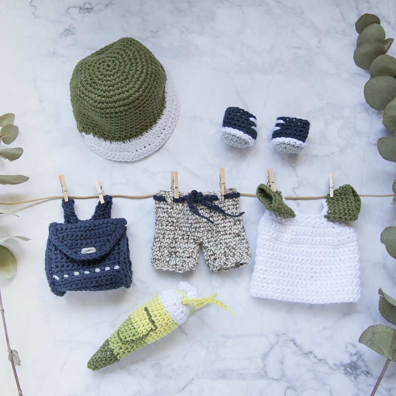 Mein 2. Outfit für deine Anziehpuppe ist ein Set für den Kindergarten- bzw. Schulstart.