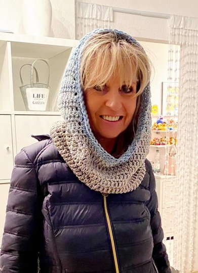 Durch das dicke Garn kann der Hoodie Schal ganz easy an einem Tag gehäkelt werden.